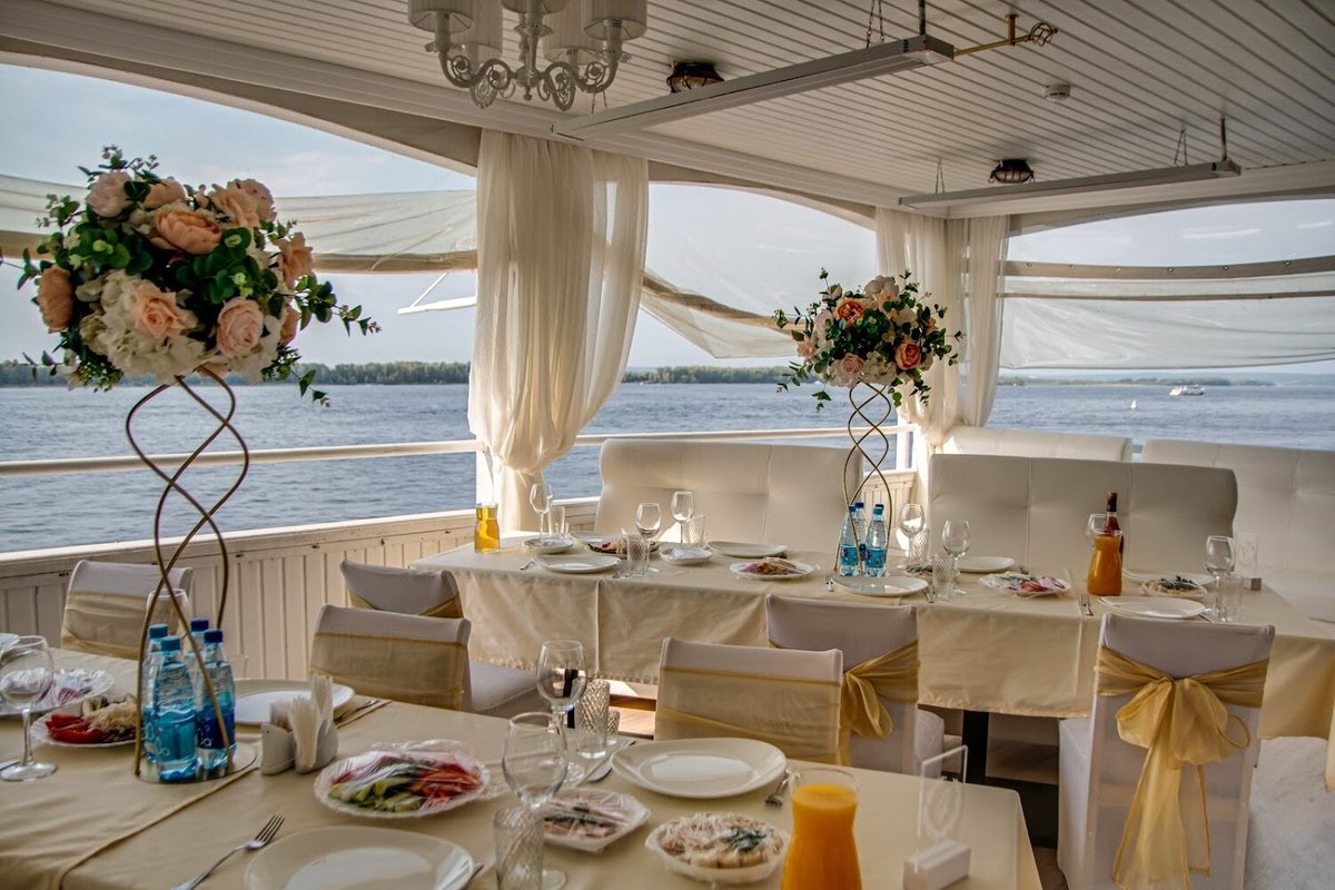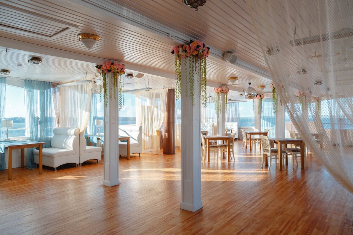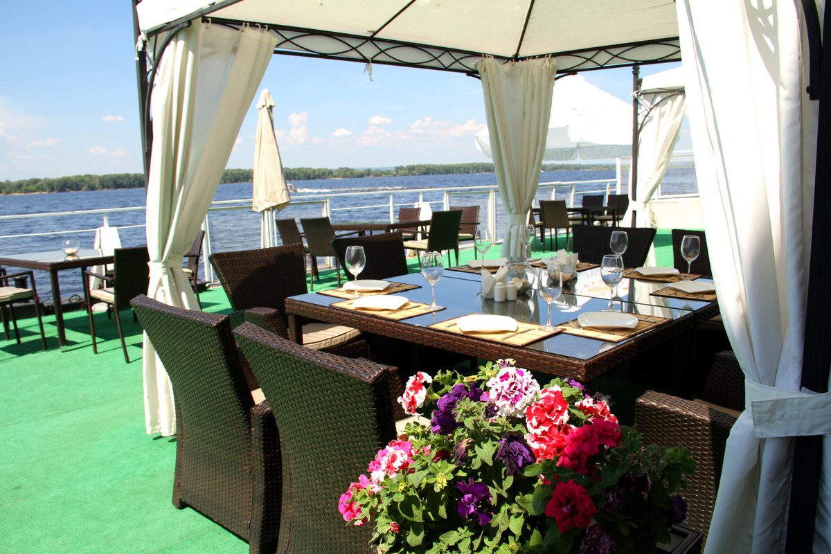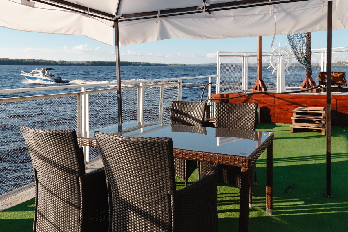 Наш ресторан оформленный в виде корабля, расположен недалеко от воды и обладает потрясающим панорамным видом! Он славится не только своей кухней и напитками - мы порадуем вас дизайном внутри и вокруг. Если вы цените красоту вокруг, посетите наш ресторан. В тёплое время года лучше чаще находиться на воздухе. И не только гулять, но и пообедать или поужинать. Специально для таких случаев у ресторана Белуга на Волге имеется веранда с выходом на улицу.